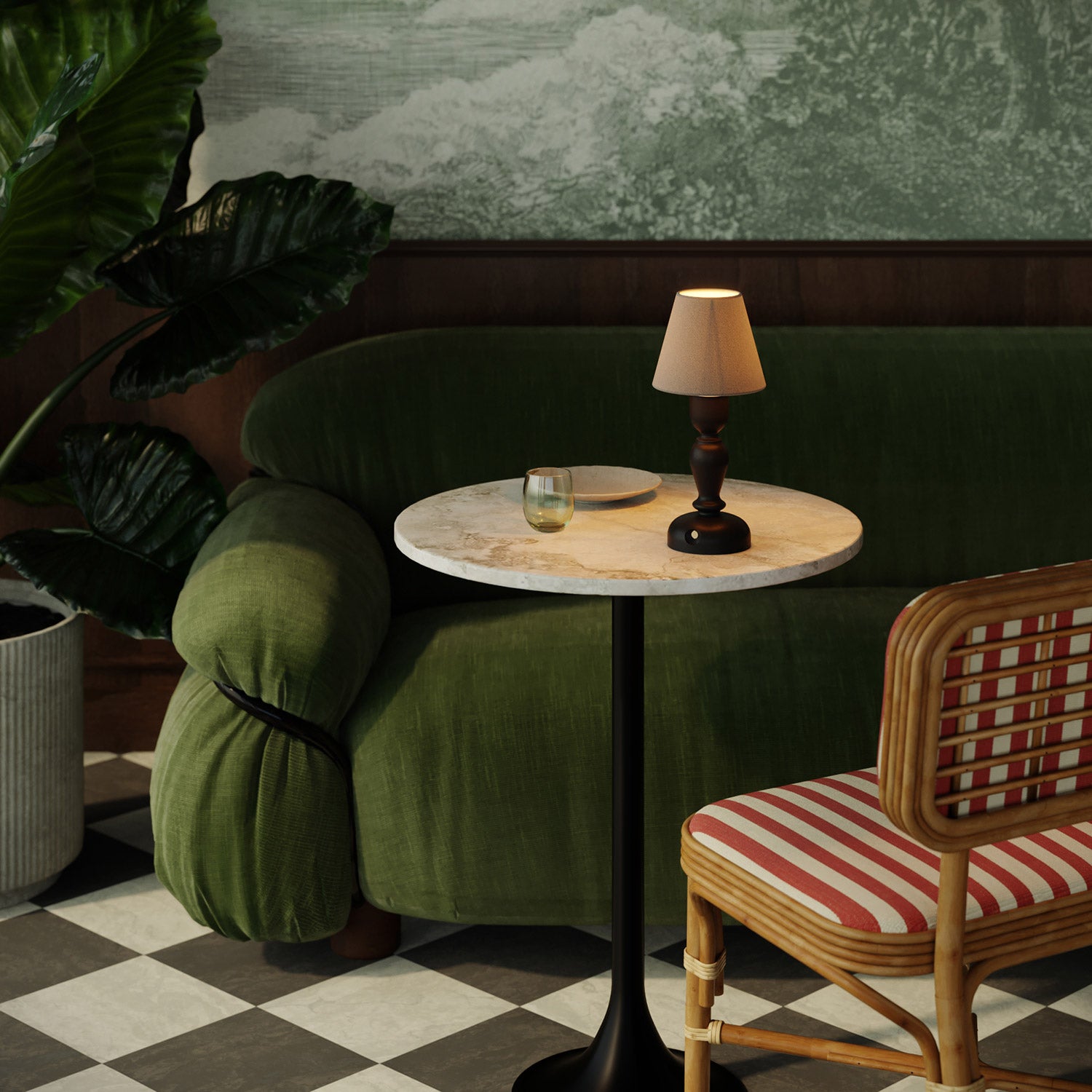 Con la sua base ondulata e la tonalità nera opaca, Cabless14 dona un tocco deciso e sofisticato agli spazi. Perfetta in ambienti moderni, industriali o in contrasto con arredamenti chiari, questa lampada porta charme e personalità. Il mini paralume Impero ne esalta lo stile, mentre il pulsante di accensione touch in ottone crea un elegante equilibrio visivo.