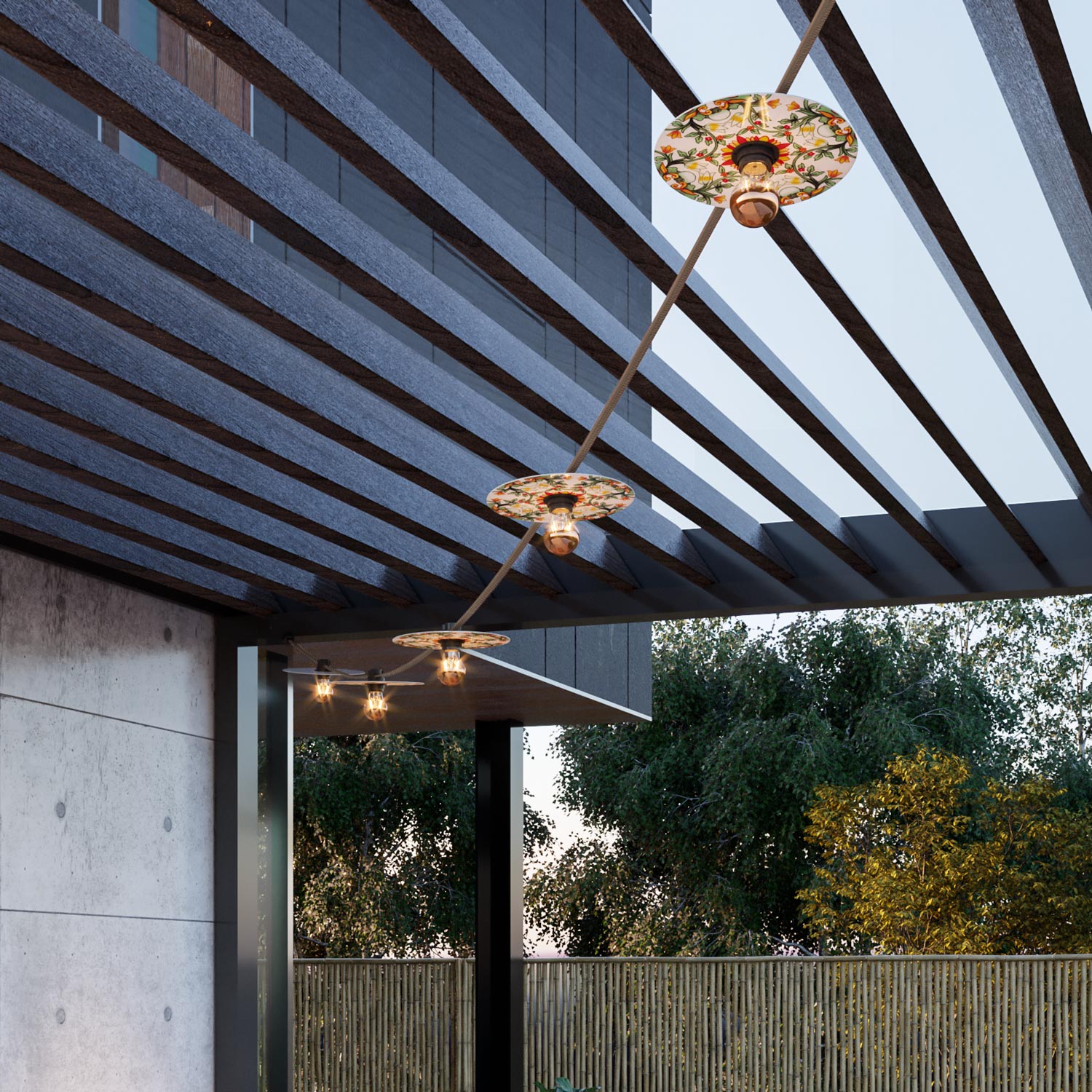 Illuminazione outdoor modulare | Lumet | IP44 | Catenarie decorative per esterni coperti |
