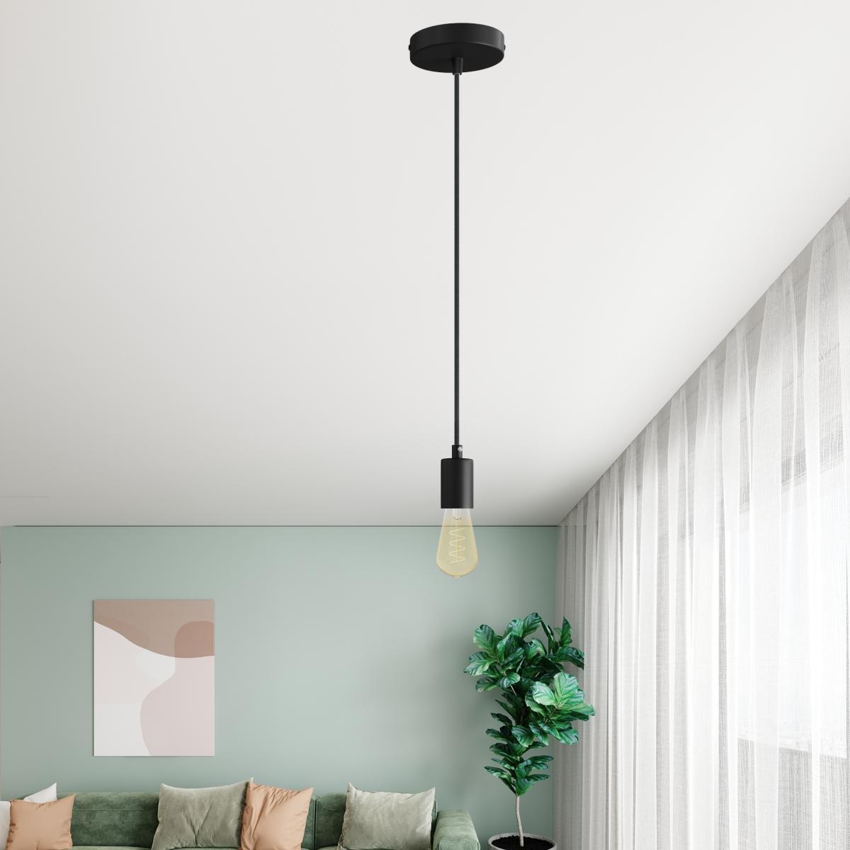 Lampenbaldachin : 1X [KRM57FCVN] Zylindrischer Lampenbaldachin Kit aus Metall - Cable clamp: Conical, Finish: Schwarz, Smart Home: No