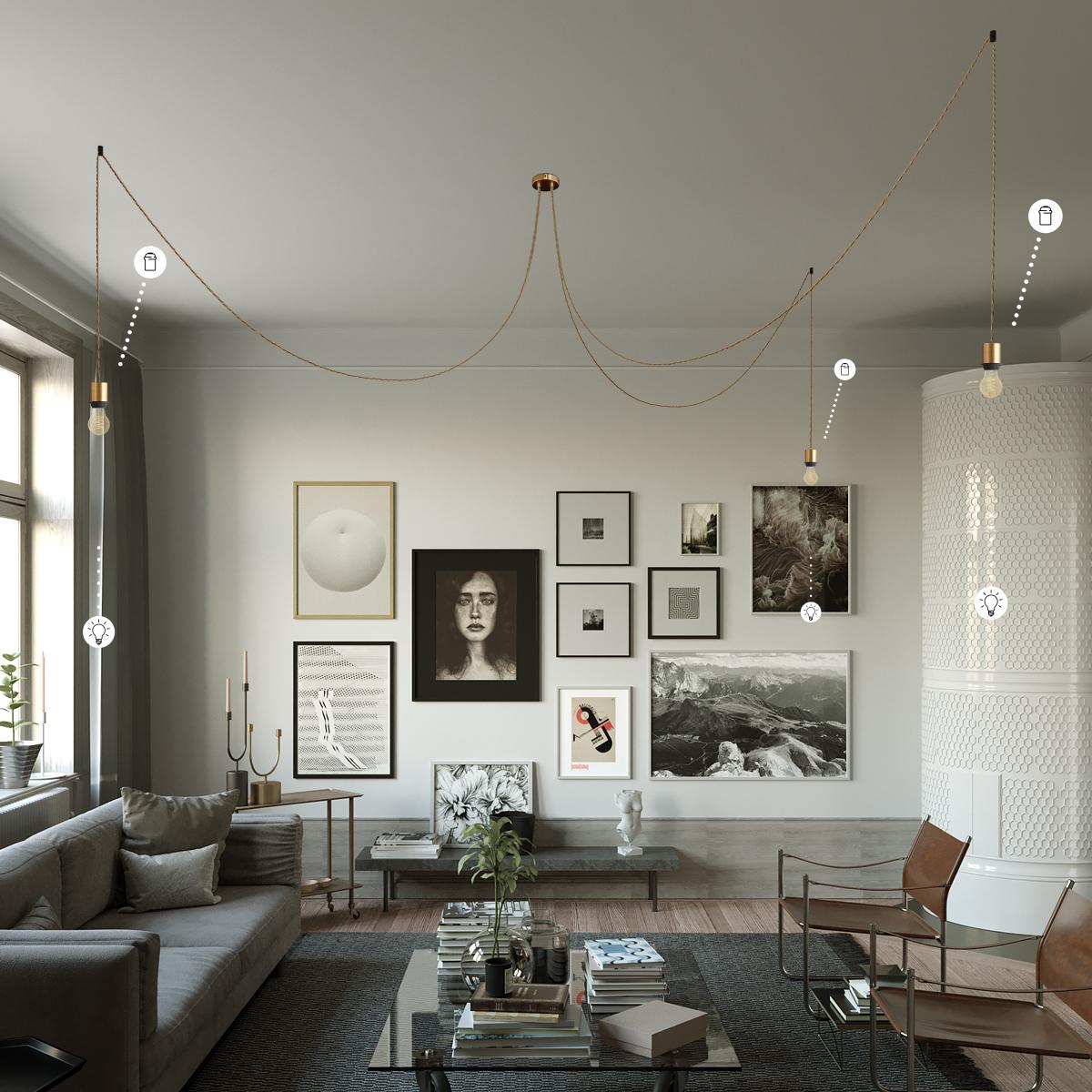 Porte-lampe : 3ème bras : 1X [KBM4551OTS] Kit douille E27 semi-filetée en métal avec serre-câble dissimulé - Finition: Brushed bronze